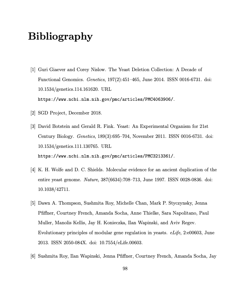 References should remain consistent throughout the manuscript, even in cases where sections of the entire manuscript have been parsed from different publications/papers. Theses and dissertations, if derived from multiple sources, should be reformatted and presented as one cohesive manuscript.